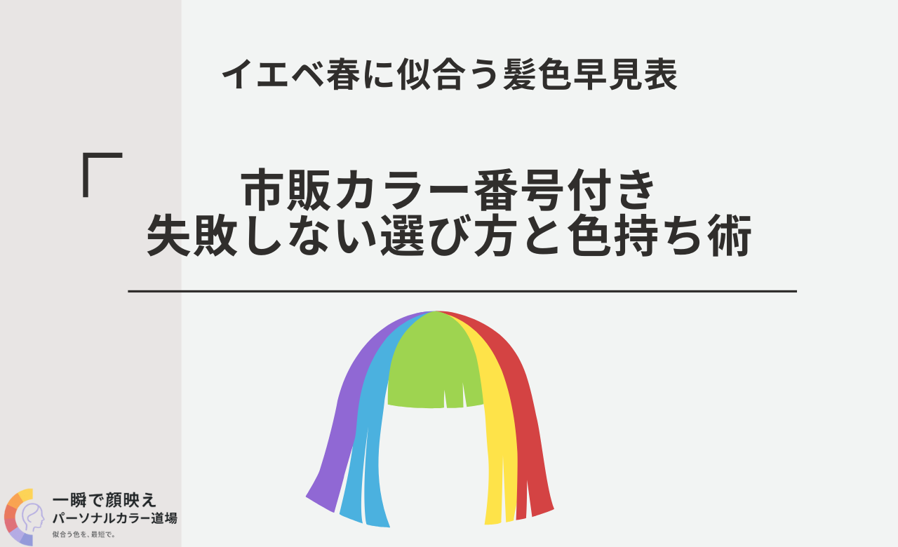 「明るい服は似合うのに髪だけ重い」「抜けると黄ばみが強くて疲れて見える」「箱の番号が多すぎてどれを選べばいいの?」——それは、イエベ春の核=明るさ・透明感・あたたかさに対して、髪の明度(トーン)と色み(ベース)が半歩ズレているサインです。