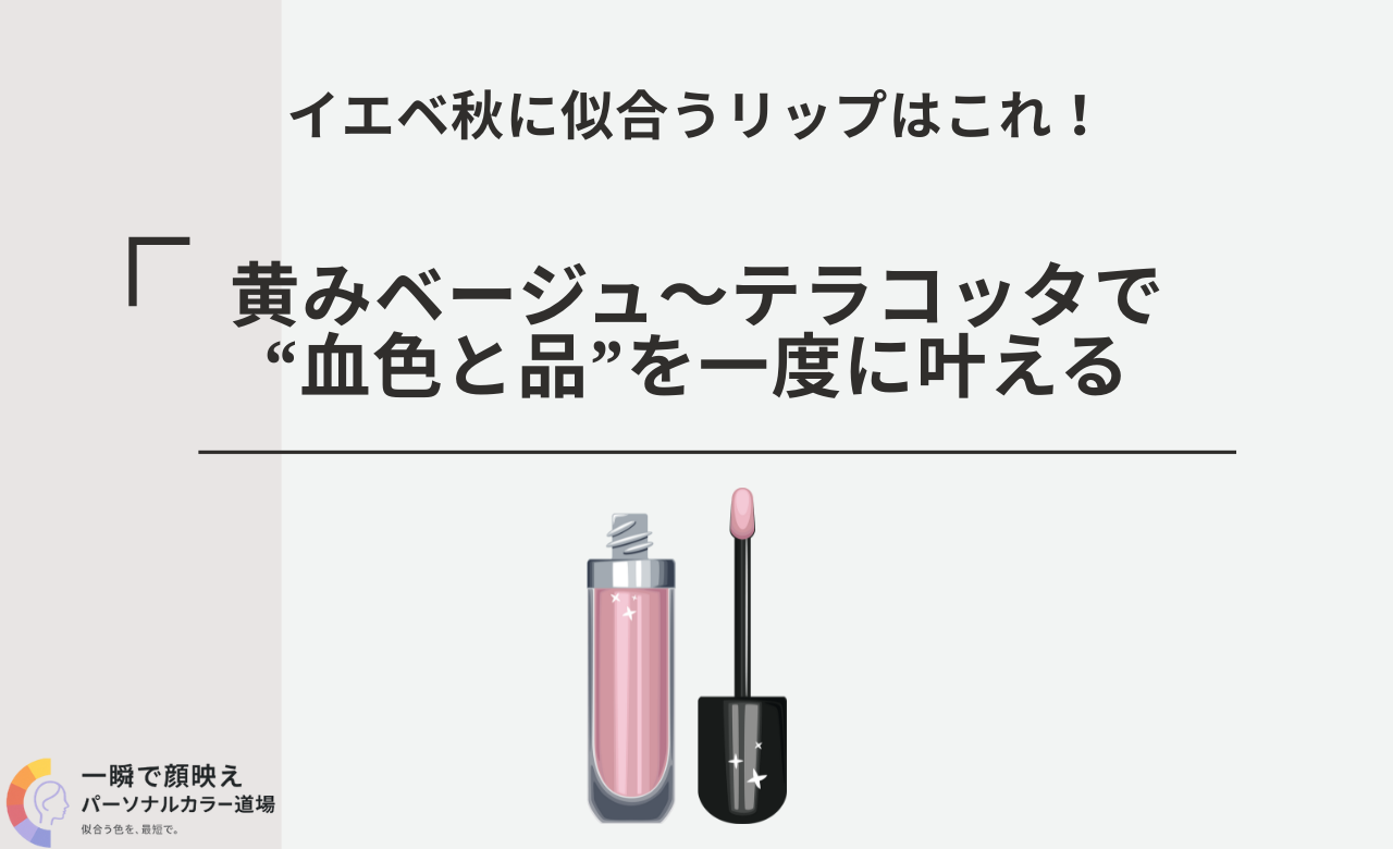 イエベ秋のリップは、黄み×中明度×セミマット+内ぼかしが“外さない公式”。黄みベージュ〜テラコッタ〜ブリックの間で半段だけ濃い色を選び、輪郭は柔らかく、艶は中央だけ。