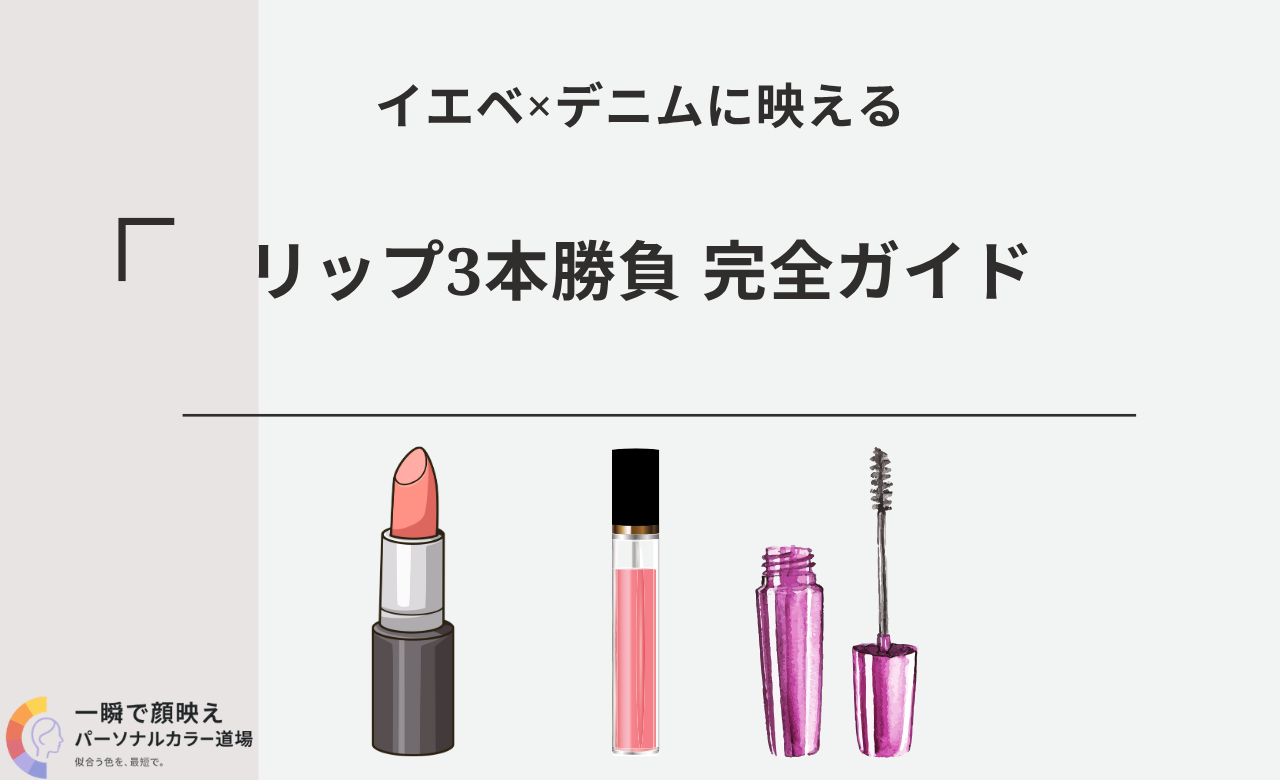 「デニムは似合うのに顔がぼやける」「赤を塗ると強く、ベージュだと地味」「写真だとくすむのに鏡では良く見える」——イエベの“デニム問題”は、青い生地の冷たさと肌の温かさの差、さらに照明・背景・金具色まで絡む多要因の結果として、口元の温度・明暗・質感が負けることが主因です。