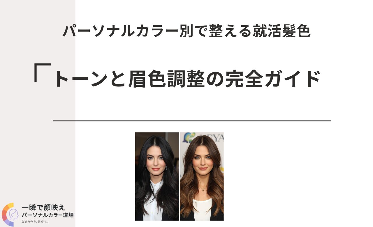 そこで大切になるのが、**「就活で許される暗さの中で、自分のシーズンに合う温度と明度を選ぶ」**という考え方です。さらに眉を髪よりも0.5〜1トーンだけ明るくし、肌と同じ温度にそろえてあげると、黒・紺・白・グレーといった定番スーツの色の中でも顔のパーツがやわらかくつながり、知的・健康的・清潔という就活で見せたい3要素を一度に満たすことができます。