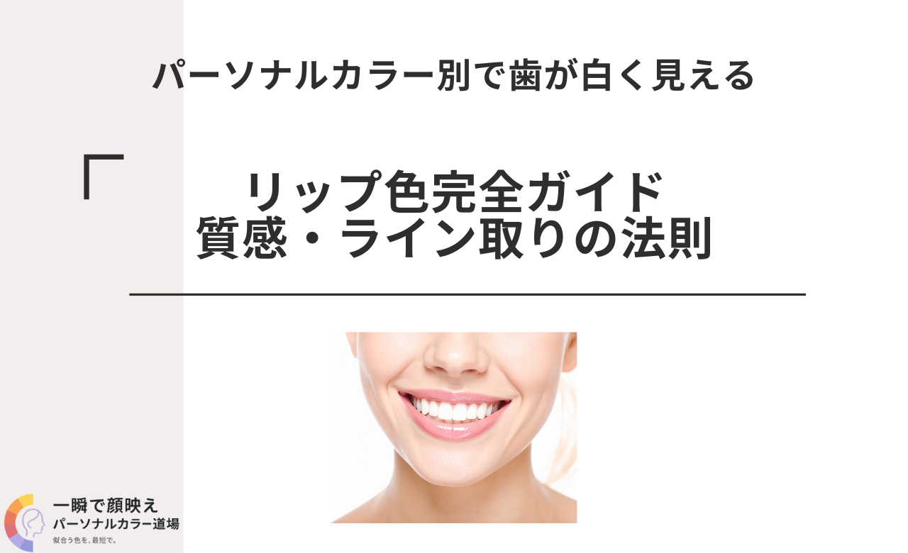 さらに、ラインは歯が見える範囲で完結させ、ツヤは中央だけに、口角はマットで締める。これをパーソナルカラー別に置き換えれば、通勤でも行事でも写真でも、同じ方法で“歯が白く見える口元”を作れます。