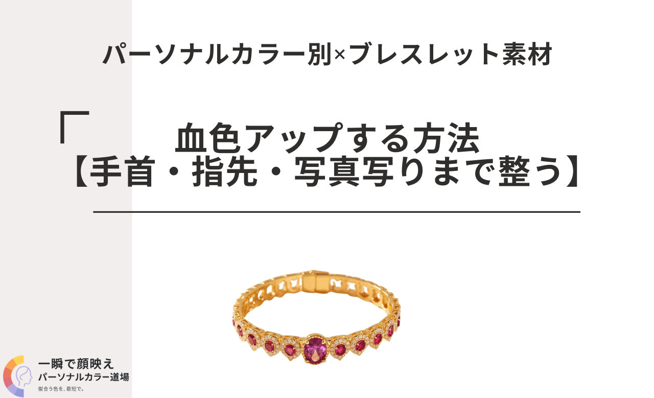 この記事では、まず「どうして手首の色で顔色まで変わるのか」という原理をやさしく押さえ、そのうえでパーソナルカラー4タイプ別に、合う金属・合う石・避けたい素材・重ねづけの順番を細かく整理します。