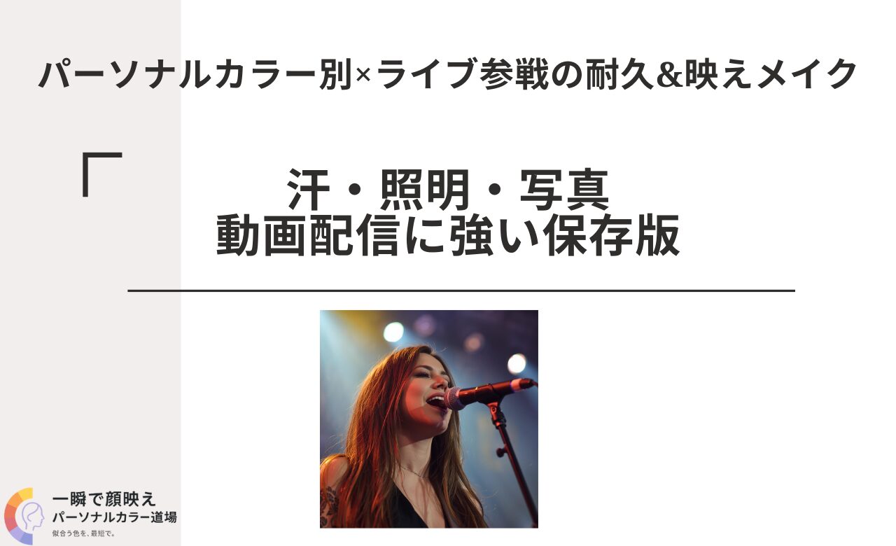 この記事では、まず「なぜライブの日は崩れやすいのか」を環境ごとに言語化し、そのうえでイエベ春・ブルベ夏・イエベ秋・ブルベ冬の4タイプ別にベース作り・チーク・リップ・アイ・ハイライトまでを細かく分けて解説します。