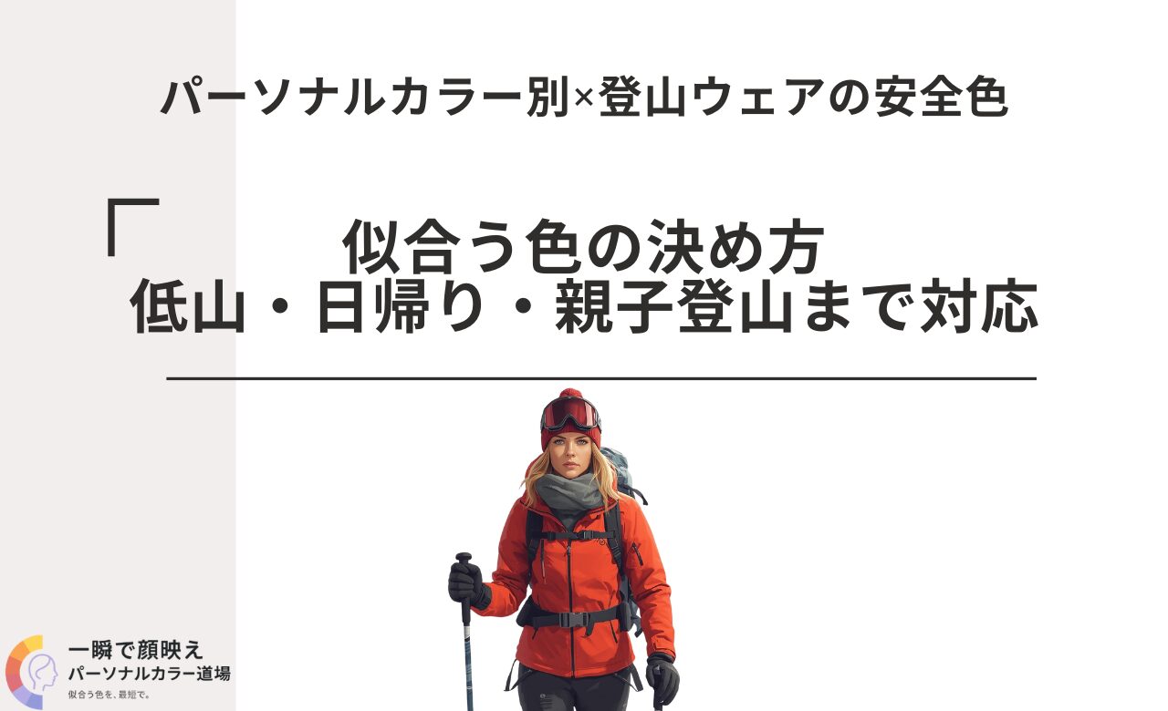 登山の服選びで最初にぶつかるのは「山で推奨されるあの派手色を着たら顔が一気にくすんだ」「ショップで見たモデル写真ではよかったのに、自分が着ると落ち着きすぎて地味」「家族と行くから安全色で合わせたいのに、自分の肌色だけ沈んでしまう」という、安全性のために必要な“見えやすい色”と、自分自身を一番きれいに見せる“似合う色”が一致しない問題です。
