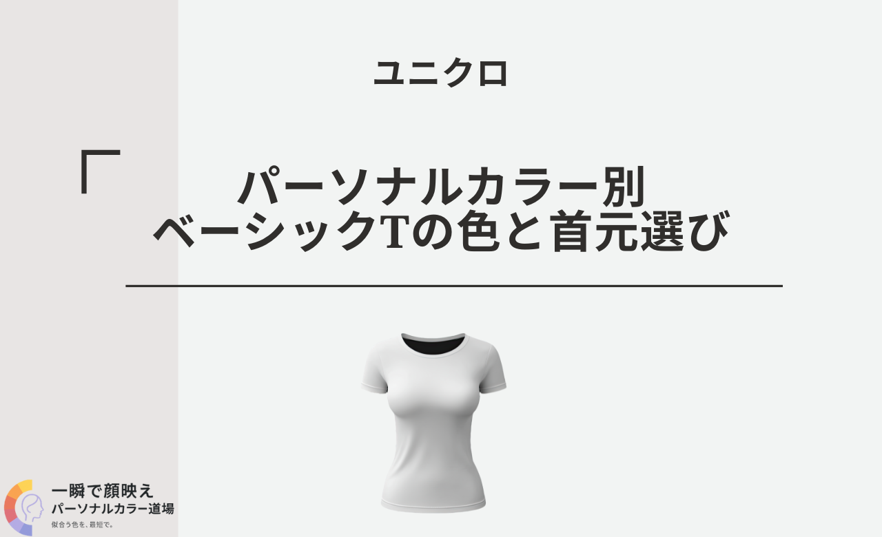 ベーシックTは、自分のパーソナルカラーで白目が澄む色を核に置き、首元で余白=光の窓をつくれば、通勤も週末も写真もぶれません。スプリング/サマーは高明度×清色寄り、オータム/ウィンターは温度とコントラストの管理を最優先。
