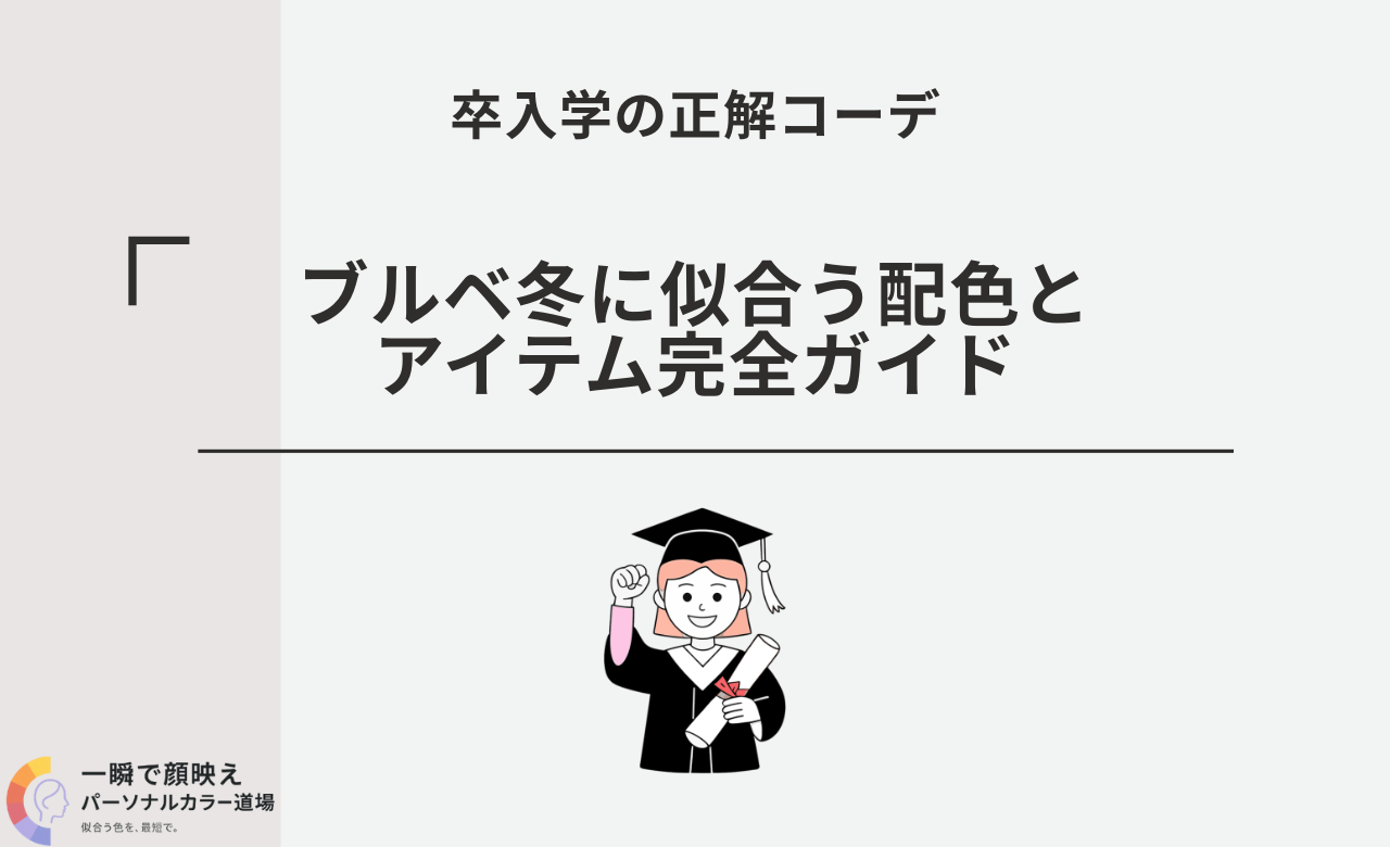 卒入学のブルベ冬は、上に最明色、下に深色、小物に冷たい光。