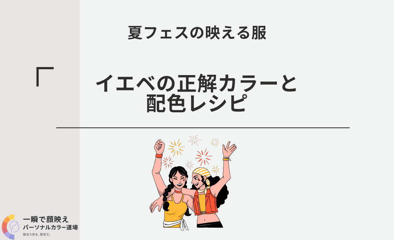 照り返しの白テント、砂ぼこり、夕焼け、強いステージ照明、スマホの自動補正——夏フェスは光がころころ変わり、同じ服でも昼は白飛び・夜は沈みがち。イエベは本来、あたたかい黄みで血色とツヤを底上げできますが、会場では素材の光り方と色の面積配分まで合わせないと真価を発揮しません。