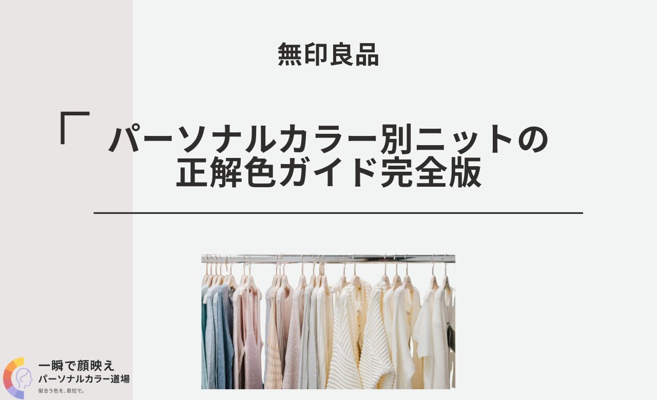 パーソナルカラーの季節に沿って明るさと温度を合わせ、面が均一な編み×首元に余白を守れば、無印良品のニットは通勤も休日も清潔・上品・細見えが安定します。