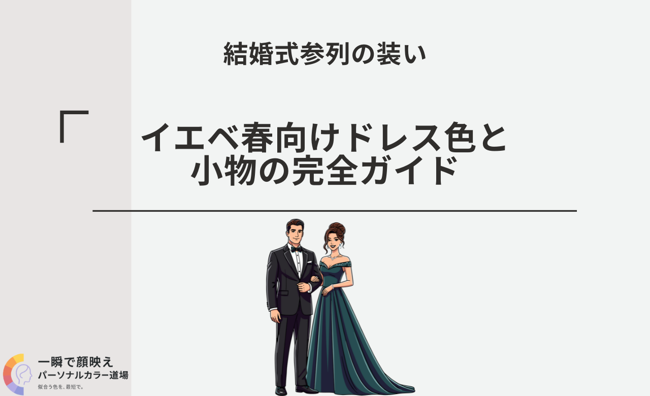 本稿では、イエベ春の色の原理→ドレス色の決め方→小物の最適解→会場/季節/時間帯→マナーと立場別微調整→Q&A/用語まで、今日からそのまま使える手順で詳しく解説します。