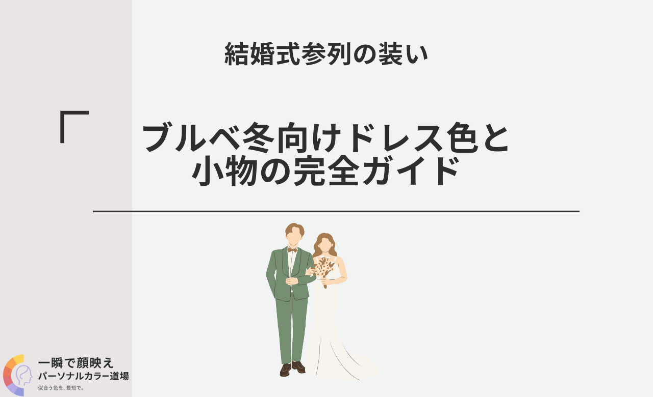 ブルベ冬の結婚式参列は、澄んだ冷色×中〜高明度の面に深色の線を重ね、白銀や透明石を一点だけ強めるのが近道。色→素材→形→光の順に選び、会場・季節・立場・役割に合わせてコントラストを微調整すれば、昼も夜も凛として華やかに映えます。