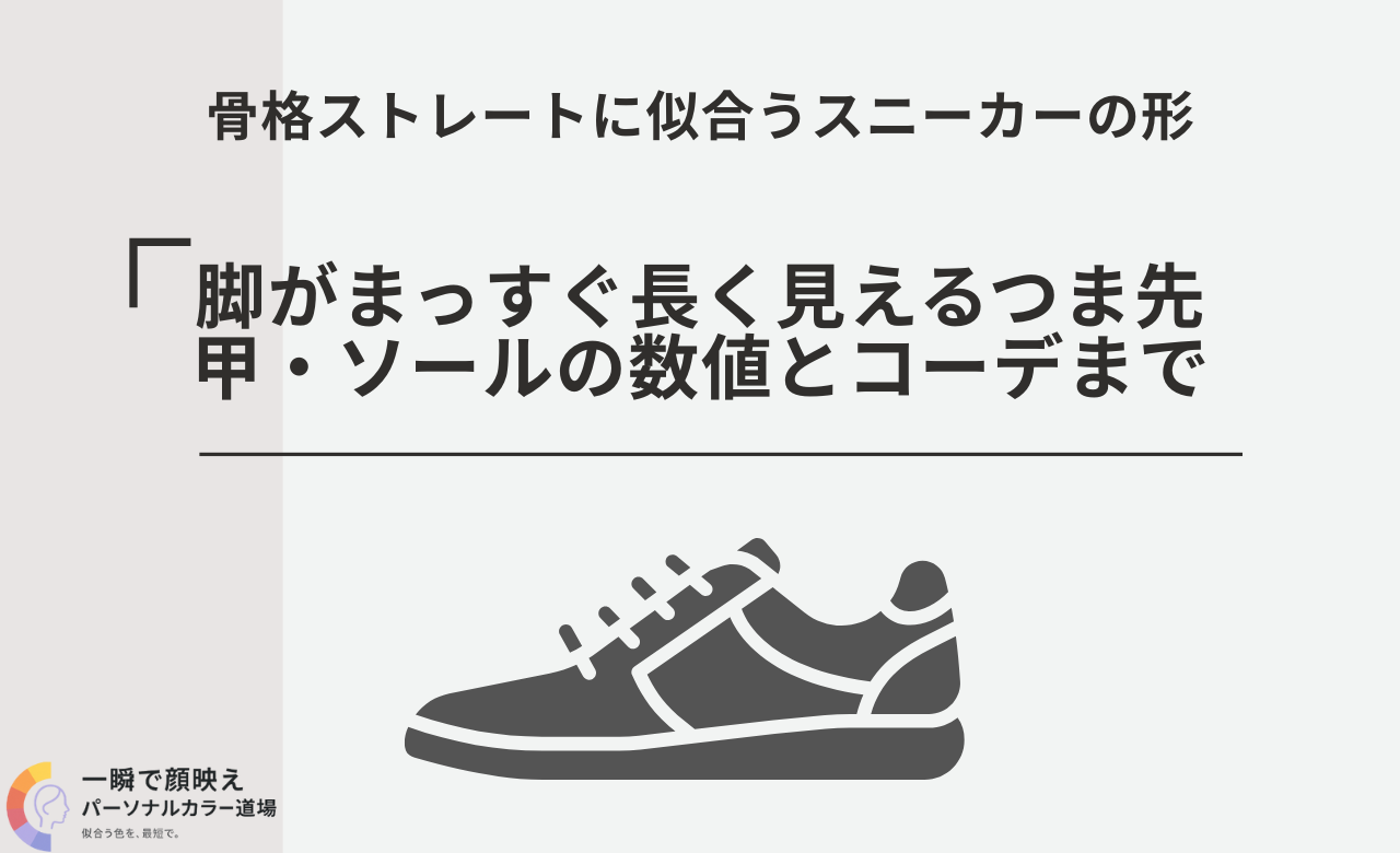 「スニーカーを履くと全体が間延びする」「厚底にしたらなぜか脚が短く見えた」「白を選んだのに足元だけ大きく見える」——。骨格ストレートがスニーカーでつまずきやすい理由は、つま先の形・甲の見せ方・ソールの厚みと角度が、体の直線的な骨格と噛み合っていないからです。