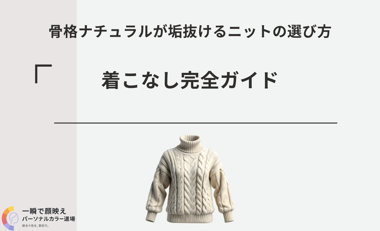 骨格ナチュラルのニットは、箱型シルエット、中厚でハリのある編み地(7〜10ゲージ)、詰まりすぎない首元が鉄則。肩線ぴったり・骨盤丈で面を整え、ストレート〜ややフレアのボトムと甲が少し見える靴をつなげれば、通勤も休日も行事も端正・縦長・大人の余白が安定して手に入ります。