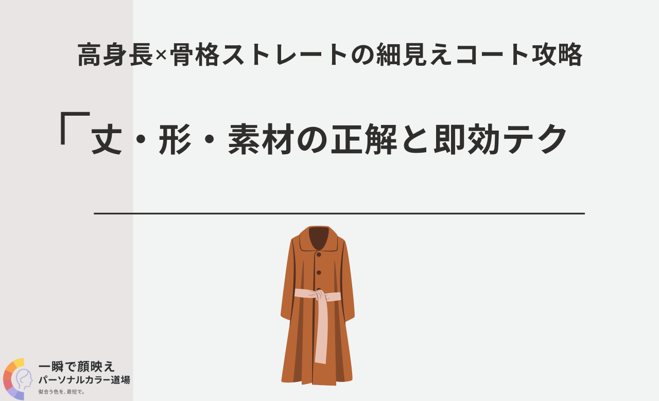 高身長で骨格ストレート。ロングを着ると圧が強く、ショートにすると間延び、厚手は横に広がり、薄手は貧相――この“どれも決まらない”感は、上半身に厚みがあり直線が映える骨格ストレートに対して、丈・肩線・前合わせ・生地密度・ボタン位置の設計が噛み合っていないことが原因です。