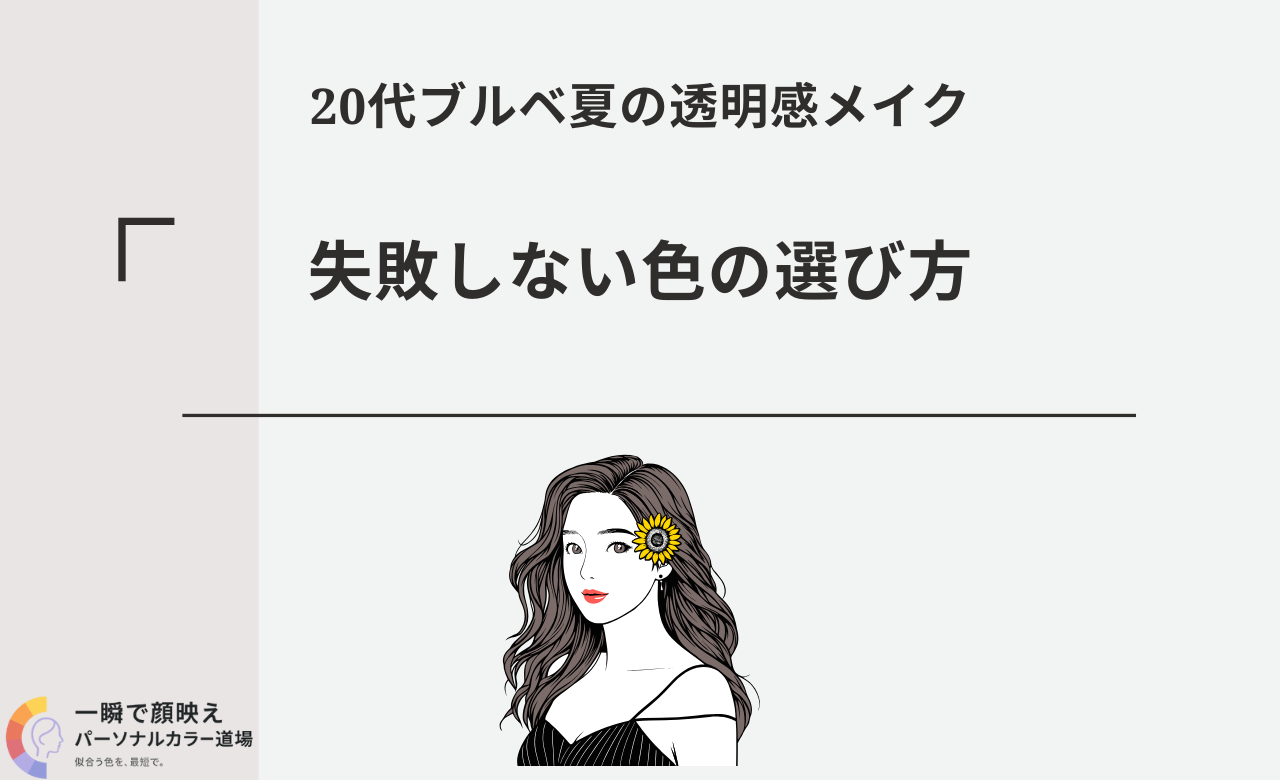 20代ブルベ夏の透明感は、高〜中明度×中低彩度の青み寄り面はセミマット・艶は点“夏帯”で目・頬・口を小連動の3原則で安定します。
