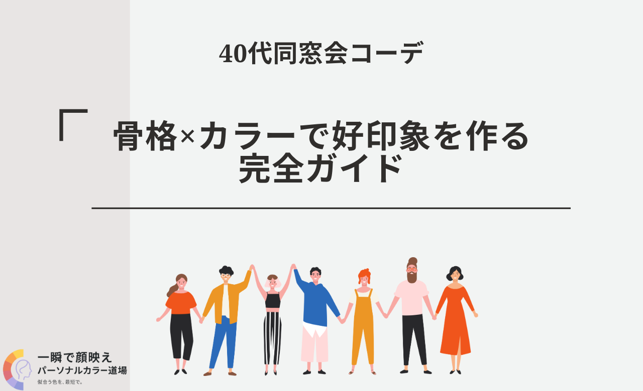 40代の同窓会は、若さの勢いよりも清潔感・品・いまの自分らしさの三拍子が要。けれど現実は「張り切ると堅い」「カジュアルに寄せると幼い」「写真で顔色が沈む」「一次会は学校、二次会は夜の店で雰囲気が変わる」——こんな迷いが同時に押し寄せます。