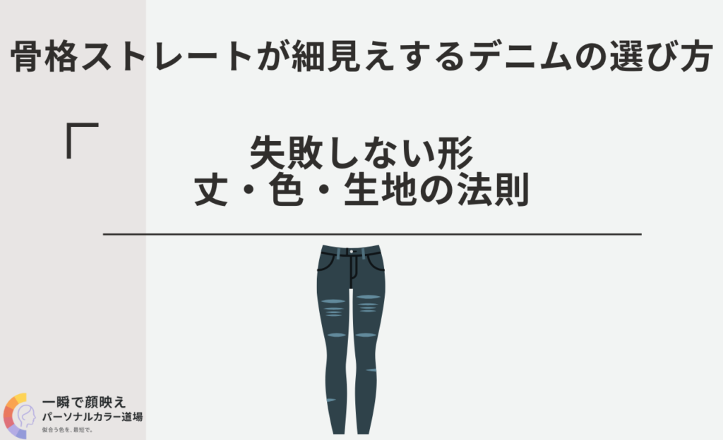 「デニムをはくと腰まわりが大きく見える」「太ももが張って見える」「流行のワイドがしっくり来ない」――その違和感はセンス不足ではなく、骨格ストレート特有の立体(縦厚・上半身に厚み・肌にハリ)と、デニムの形・丈・生地・比率の噛み合わせが少しズ... -