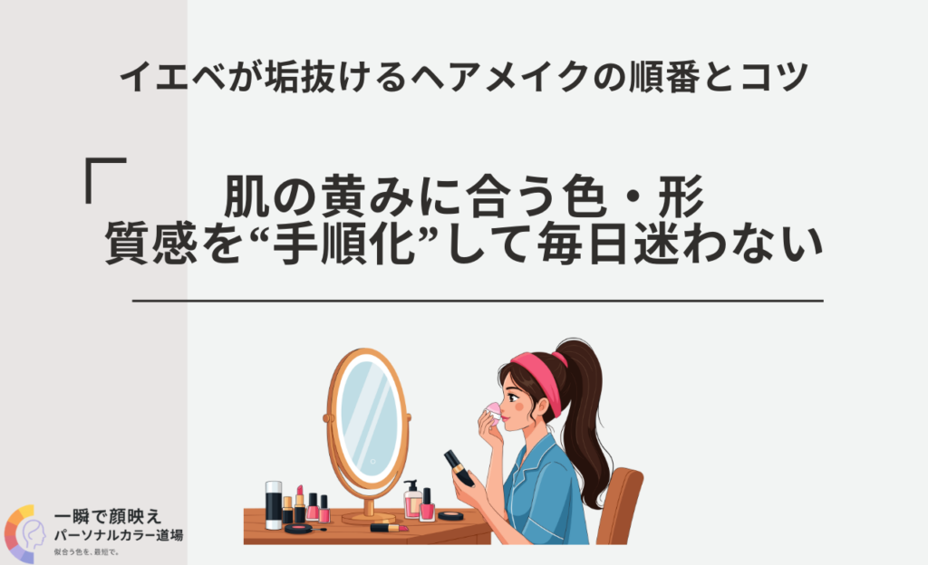 イエベが垢抜けるヘアメイクの順番とコツ|肌の黄みに合う色・形・質感を“手順化”して毎日迷わない