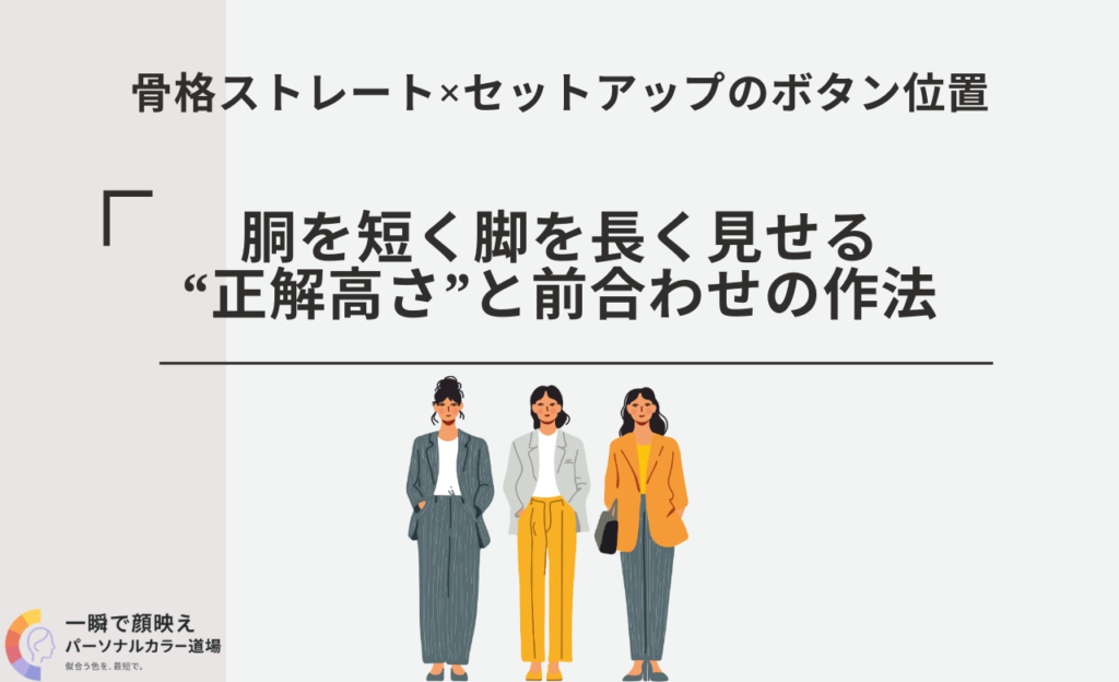 骨格ストレート×セットアップのボタン位置|胴を短く脚を長く見せる“正解高さ”と前合わせの作法